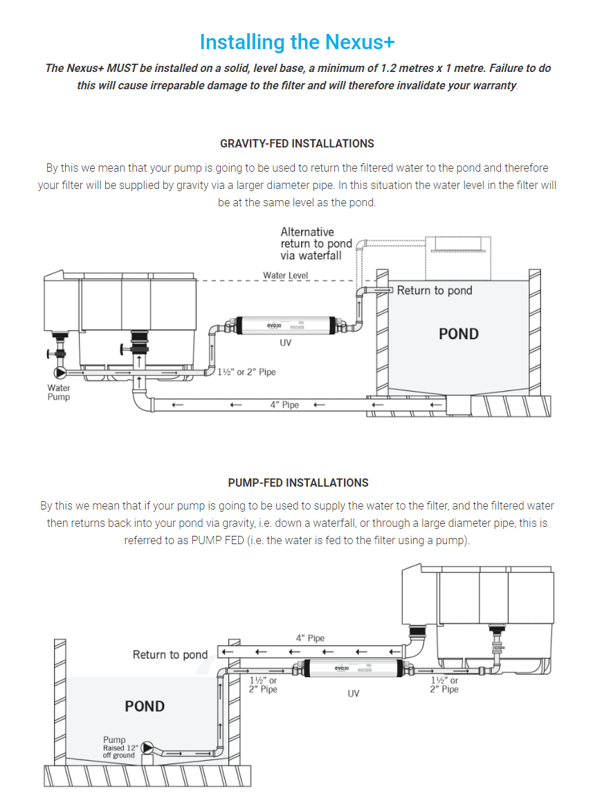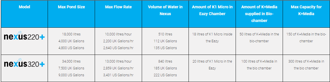 Maximum pond size: 34,000 litres / 7,500 gallons